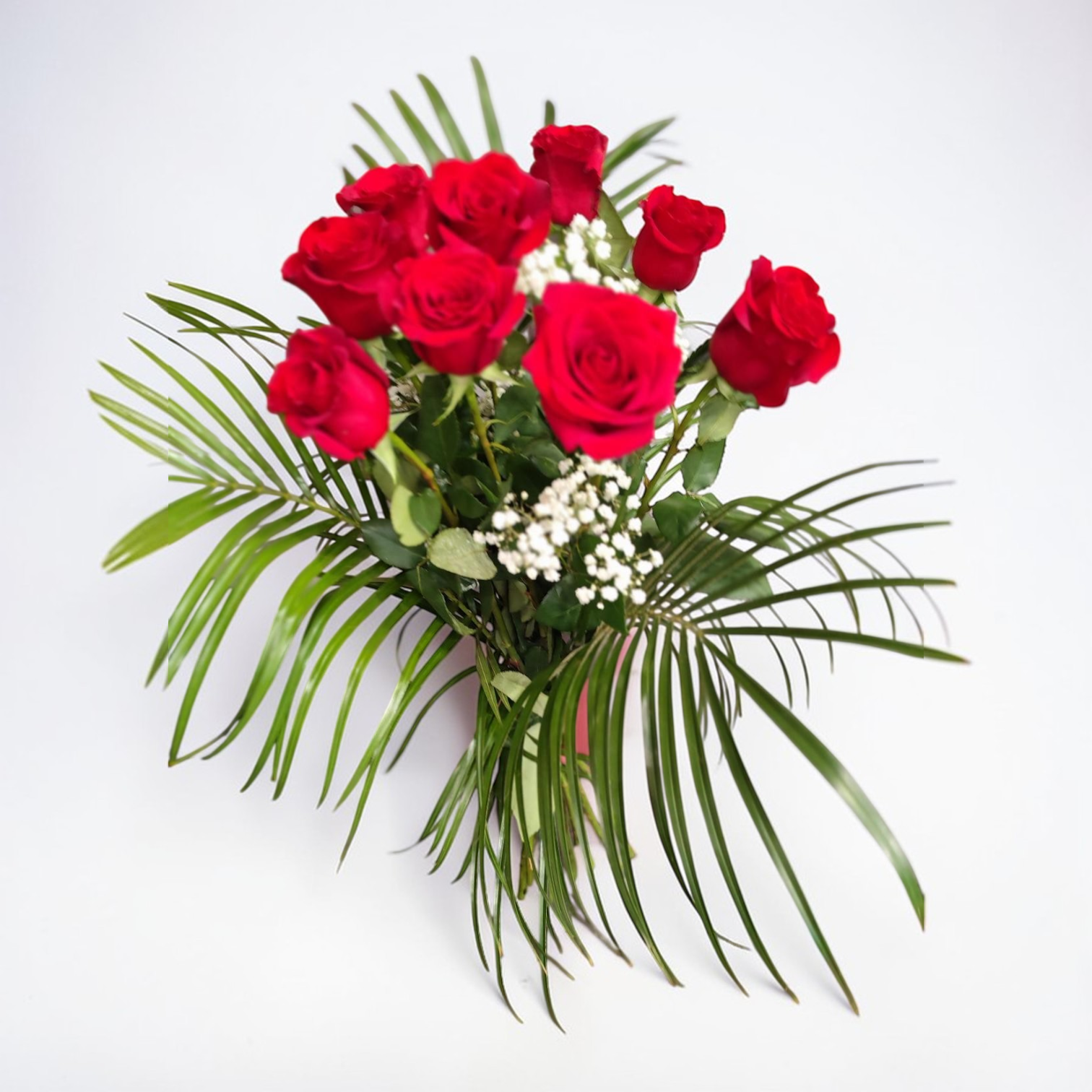 Des feuillages frais, ajoutant une touche de naturel et de douceur, permettant de sublimer la beauté des roses tout en créant une harmonie visuelle parfaite.